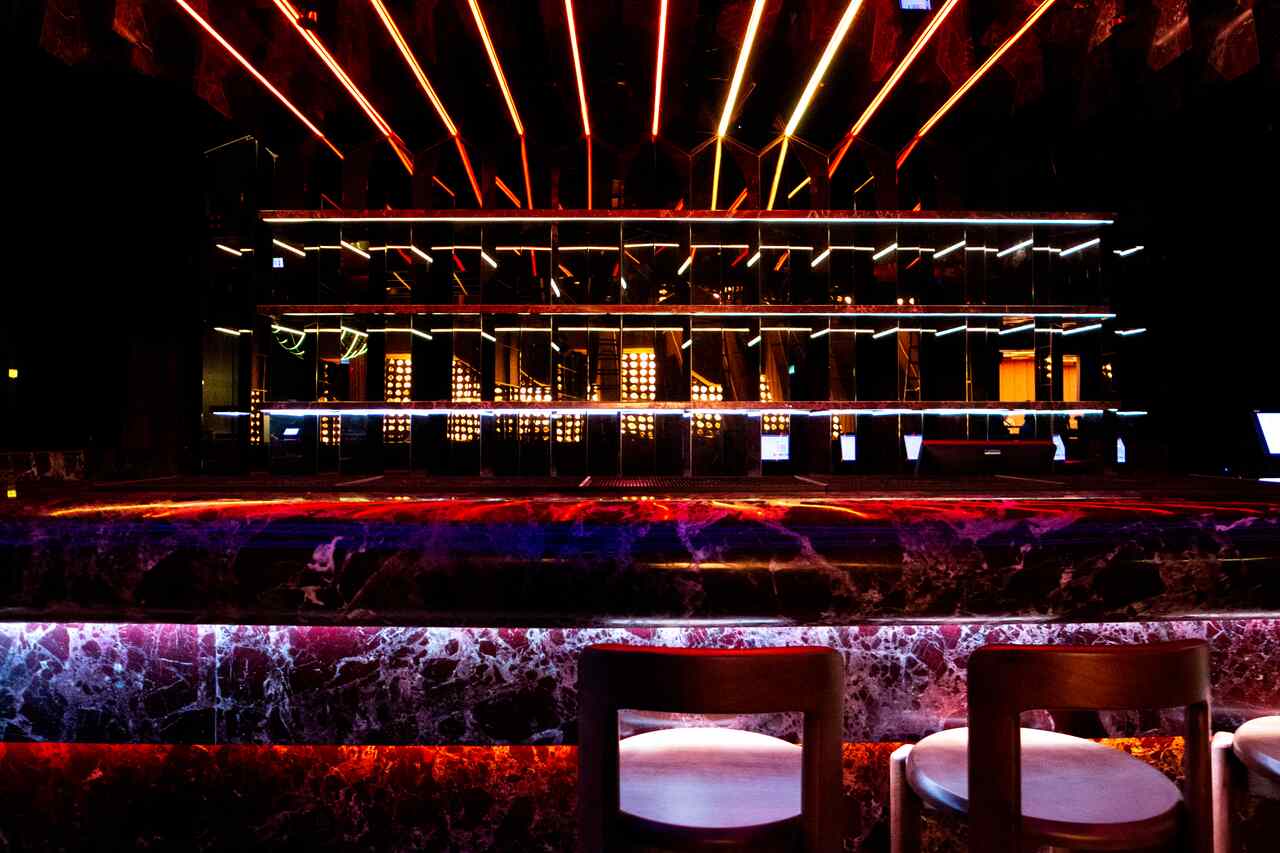 For a more casual start to the night, Lane 23’s Lounge Café is the perfect spot for an afternoon aperitif or a pre-night-out meal. The space is inspired by Tokyo’s iconic listening bars, blending L’Acoustic sound systems with burgundy marble interiors, providing an immersive dining experience in a stylish setting.