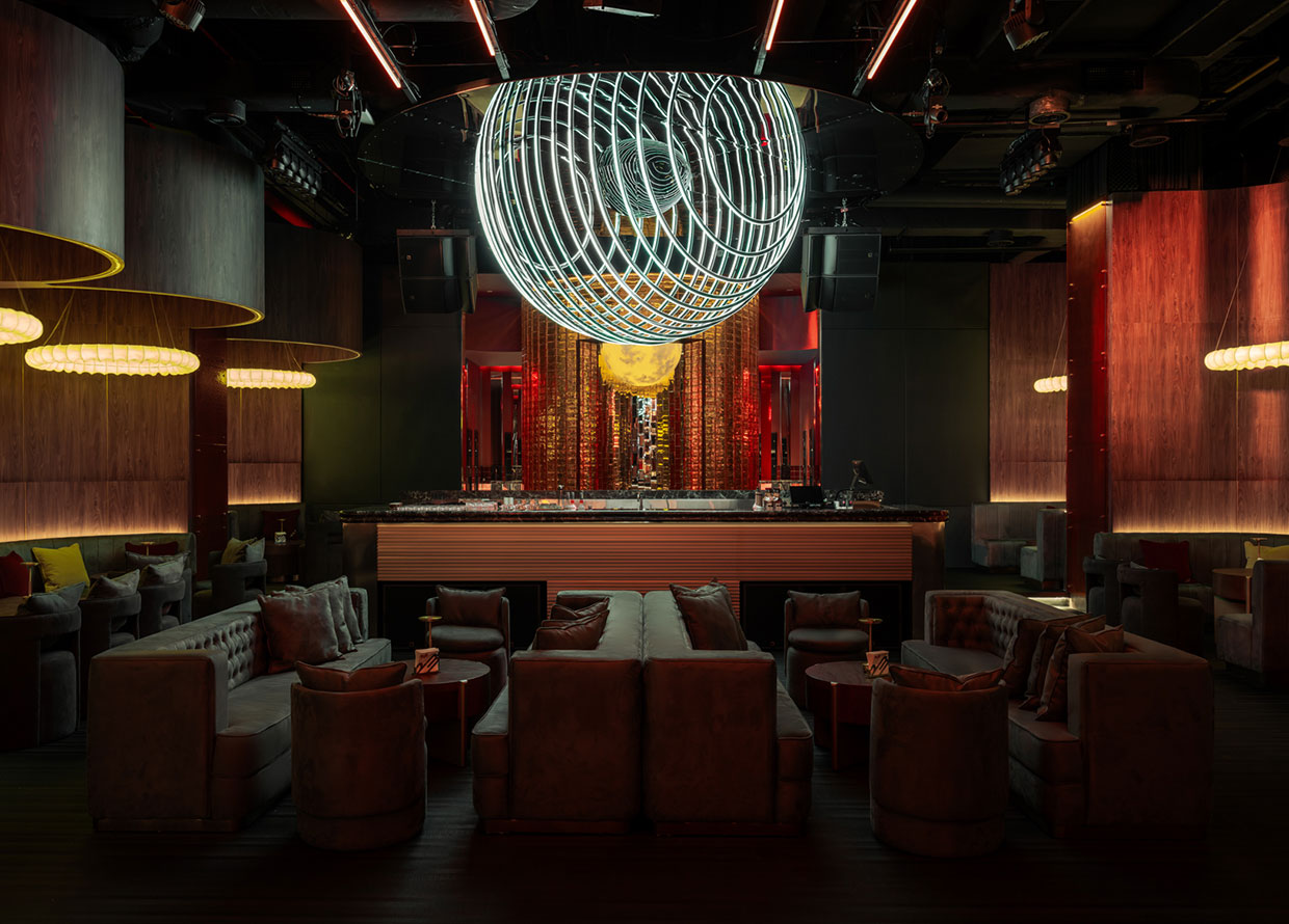 The dance floor is the heart of the venue, where expression and energy are embraced. Set right by the semi-transparent DJ booth and under a striking lightbox ceiling, it is illuminated by a large LED screen that brings the entire space to life.